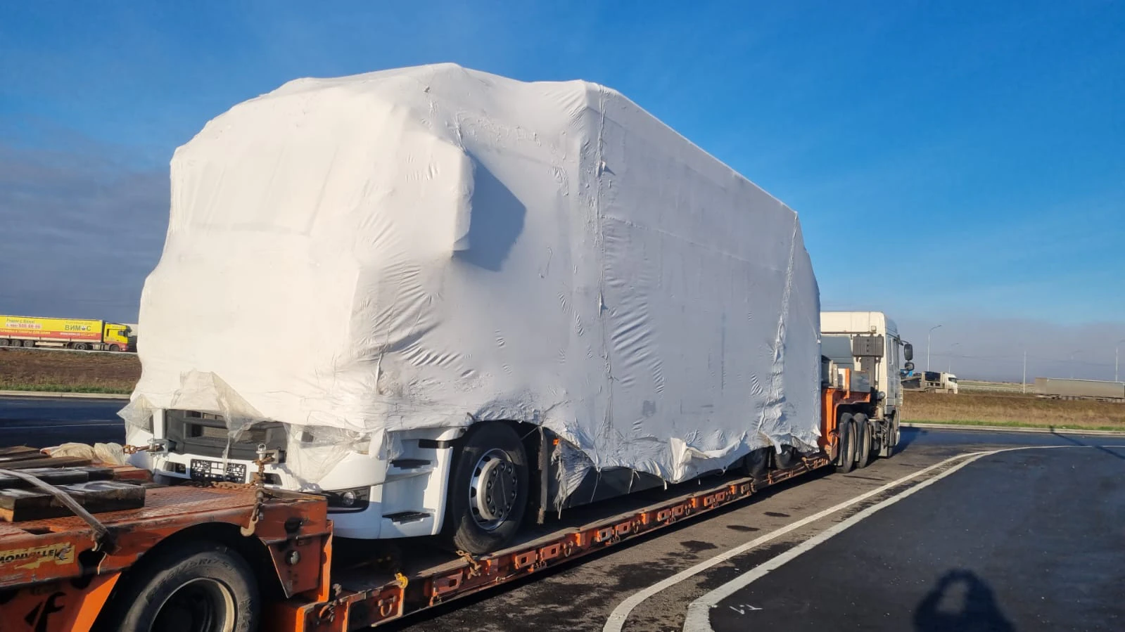 В начале ноября выполнена перевозка негабаритного груза тралом в Находку. Погрузка и выгрузка выполнена самозаездом. Для перевозки использован низкорамный трал с передним заездом.Доставка заняла менее двух недель